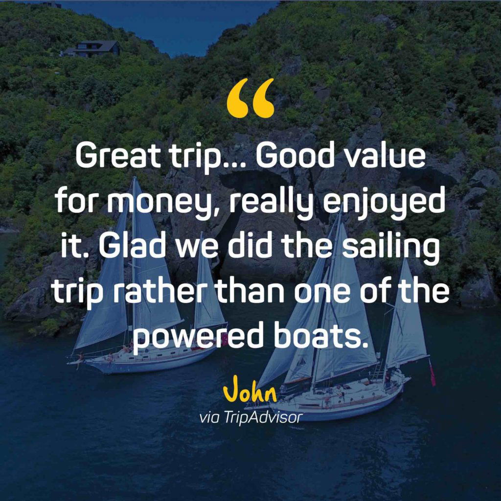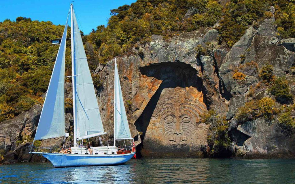 Come and join us for a 2.5-hour sail on Lake Taupo. We will cruise to the extraordinary 14-metre high Mine Bay Maori Rock Carvings via some beautiful Taupo Bays. Cruise the sparkling waters of Lake Taupō and discover its natural wonders and hidden mysteries.